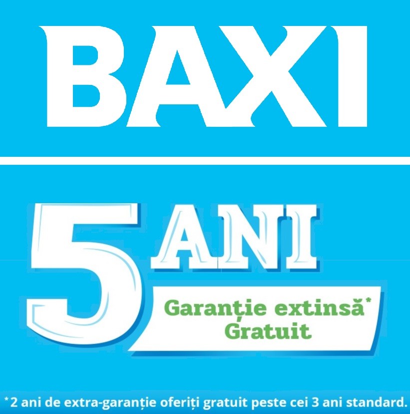 Profita acum de Extra-Garantia de 2 ANI pe care BAXI ti-o ofera gratuit la centralele termice si pompele de caldura BAXI, pe langa garantia standard de 3 ANI oferita in mod normal.
